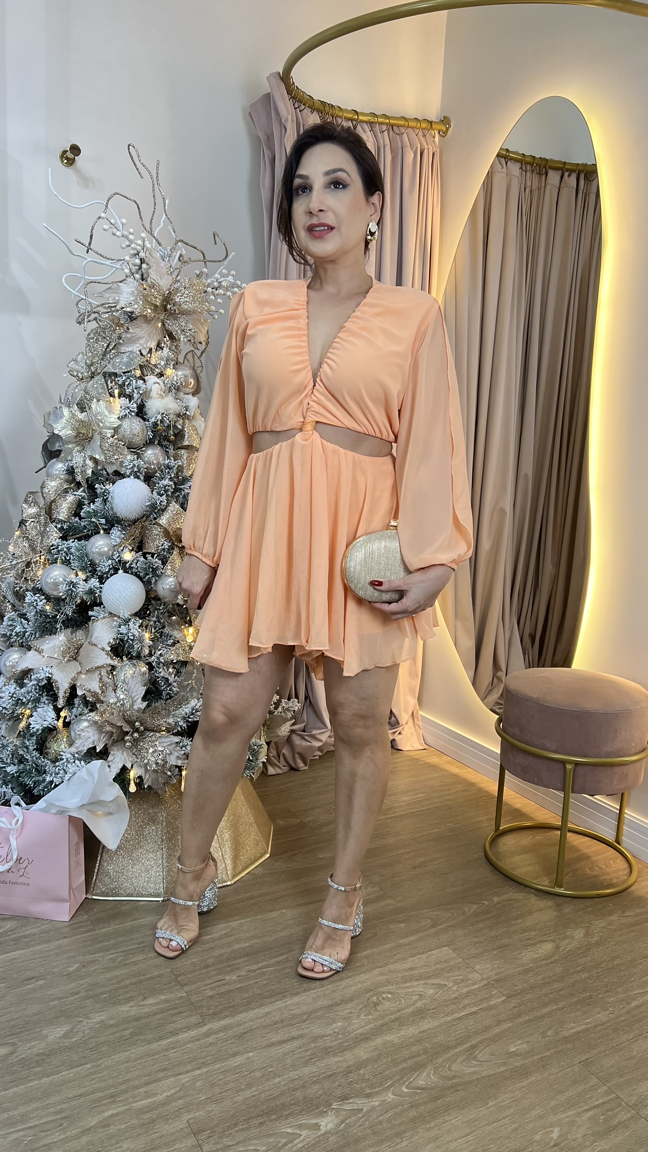 Delicado na medida certa e marcante nos detalhes, o Vestido Aurora é aquela peça que chama atenção sem esforço. Com decote em V, ele valoriza o colo de forma elegante, enquanto os recortes estratégicos na cintura trazem um toque de sensualidade moderna, destacando a silhueta feminina com leveza.